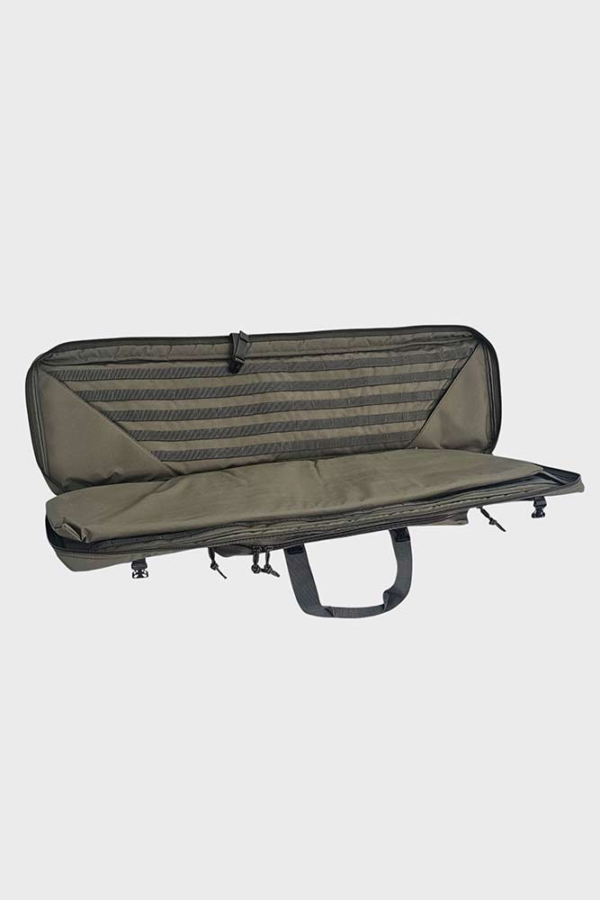 Die Tasche verfügt über einen stabilen Reißverschluss und praktische Tragegriffe, die für einen einfachen und sicheren Transport sorgen. Die Two Rifle Bag ist in mehreren Längen – 800 mm, 1050 mm, 1150 mm, 1350 mm und 1550 mm – als auch in drei Farben erhältlich – Sand, Schwarz und Olive – sodass du die passende Größe für deine Gewehre wählen kannst.
